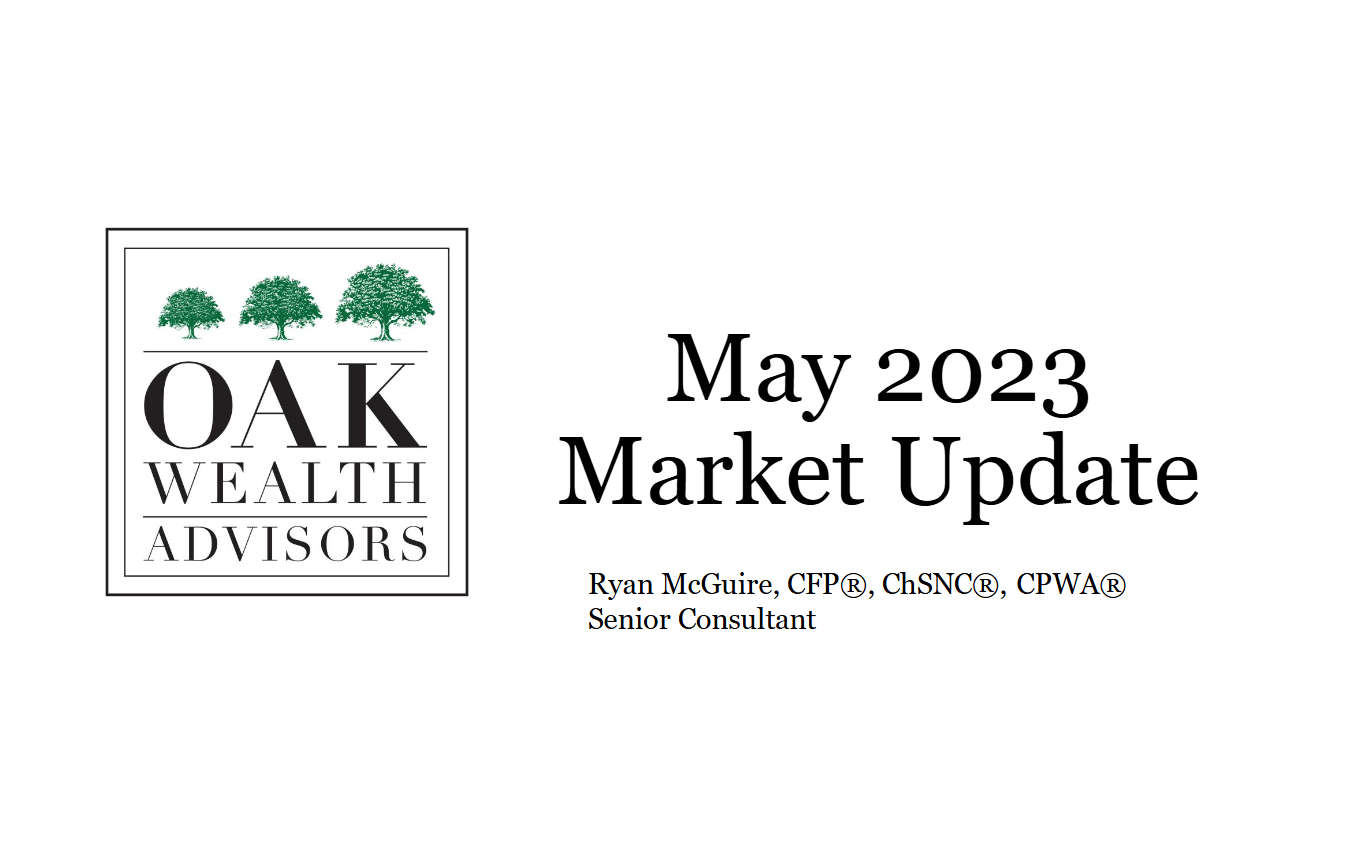 Hi, I’m Ryan McGuire, Senior Consult with Oak Wealth Advisors. This is our May 2023 market update. As you can see, it was somewhat of a disappointing month for most asset classes.