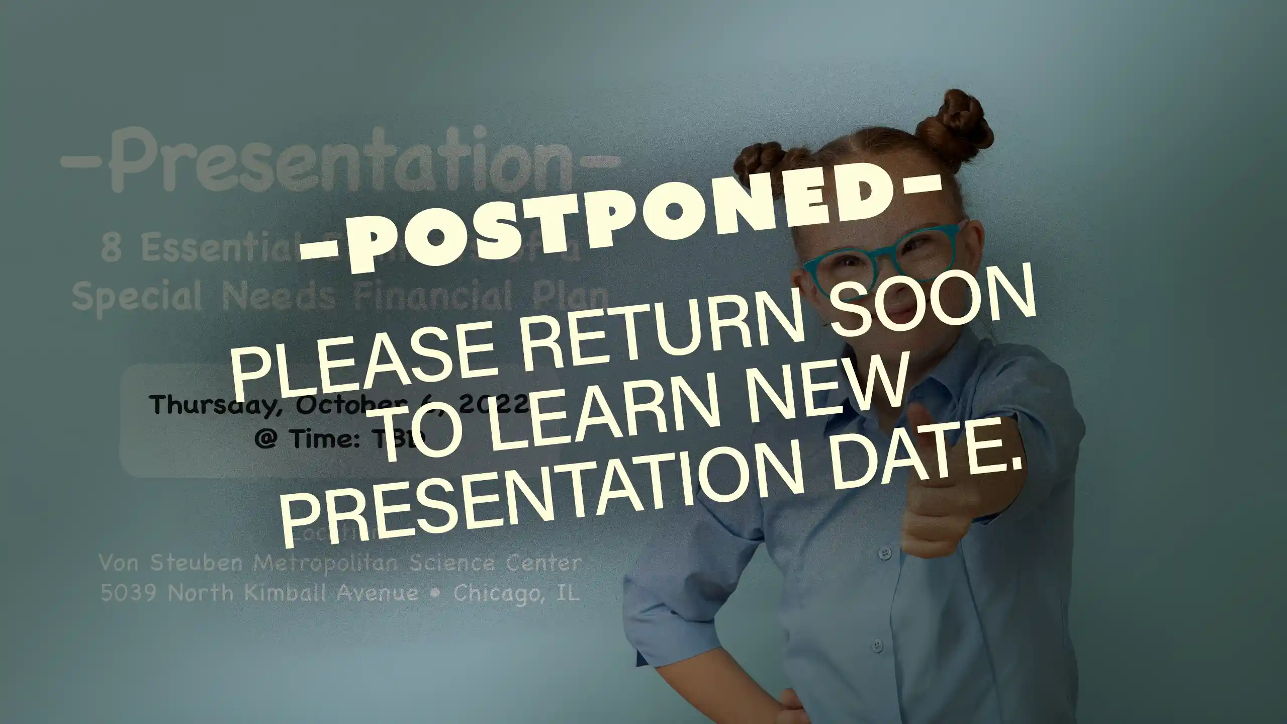 PLEASE NOTE: This event has been postponed. Please return back to learn new scheduled presentation date. Location: Von Steuben Metropolitan Science Center • 5039 North Kimball Avenue • Chicago, IL Worried about caring for your child throughout their lifetime? Mike Walther, president and managing member of Oak Wealth Advisors, will share the 8 Essential Elements of a Special […]