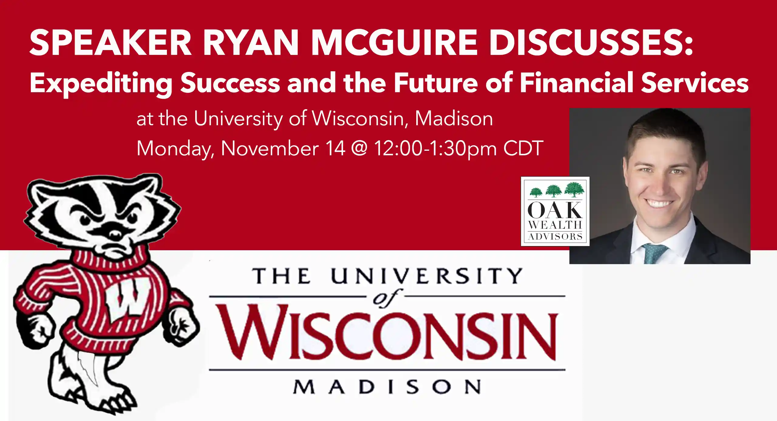 12:00 pm - 1:30 pm Discussion: Expediting Success and the Future of Financial Services November 14, 2022 November 14, 2022 @ 12:00 pm - 1:30 pm Discussion: Expediting Success and the Future of Financial Services November 14, 2022 Ryan McGuire will be speaking to a Personal Finance Classroom. Topic of discussion will be Expediting Success and the Future of Financial Services. Where: University of Wisconsin-Madison, Personal Finance Class When: Monday, November 14 @ 12:00-1:30pm CDT