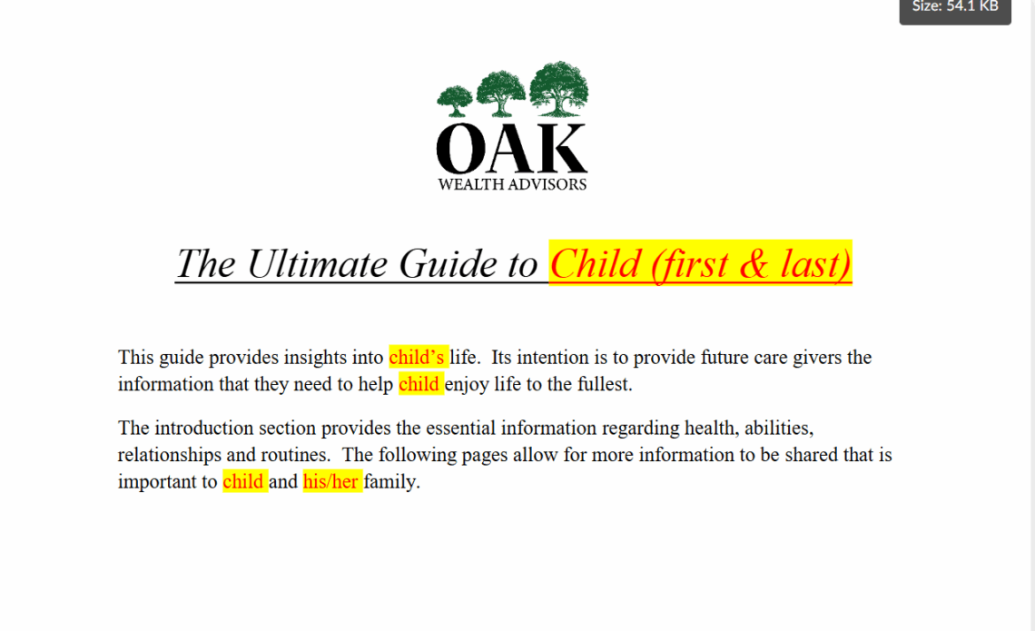 Oak Wealth Advisors’ Ultimate Care Guide Template
